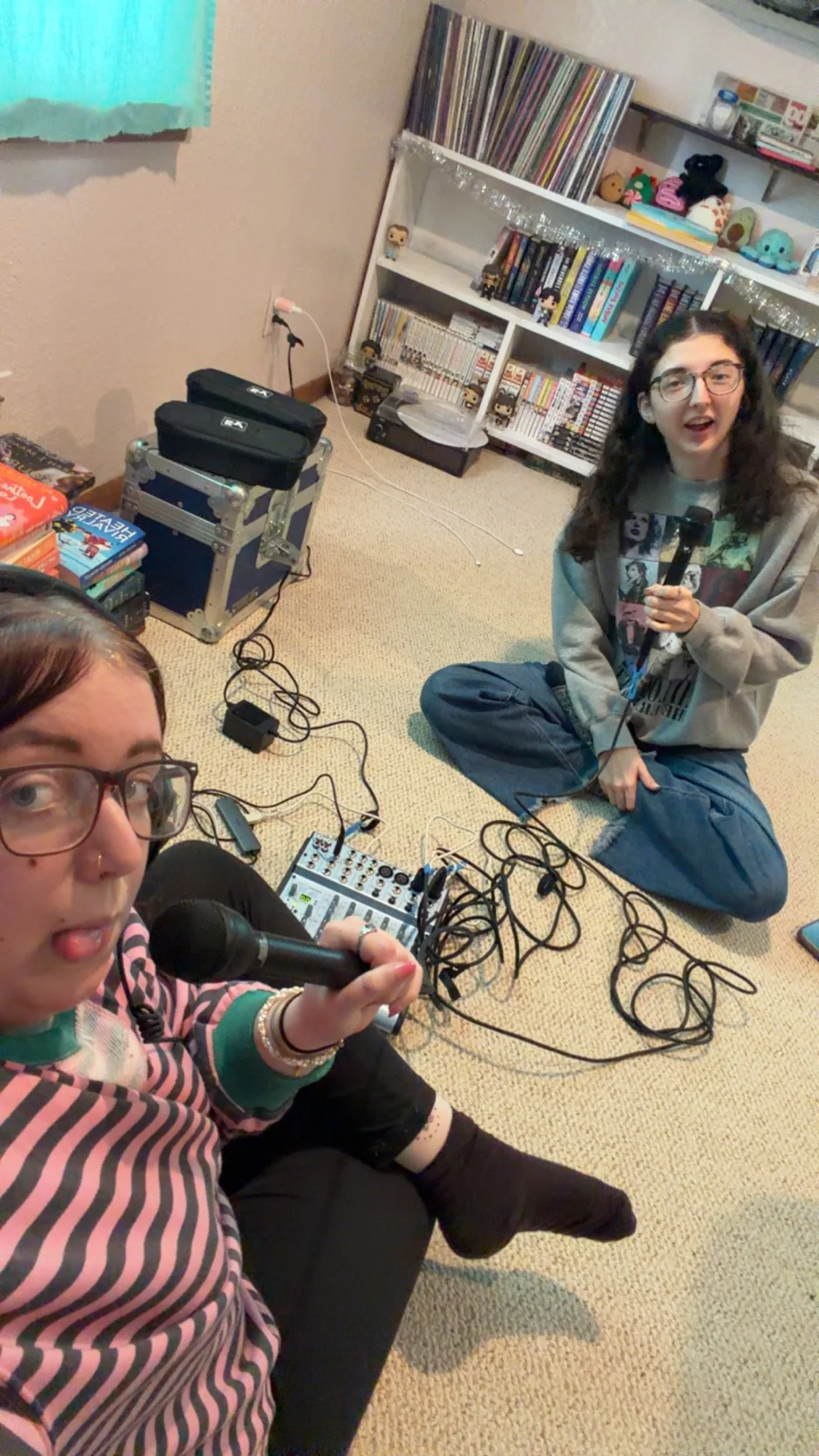 Image: MCM members using our current mobile podcast kit at home. Photo provided by Maggie Sandefur.